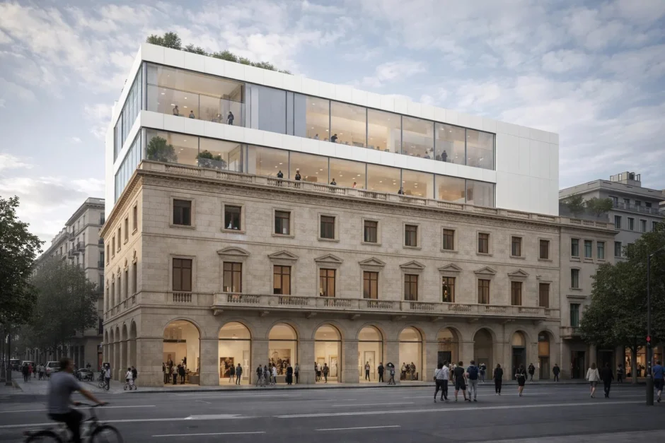 El Palau Marcet, un edificio con protección patrimonial, sufrirá una transformación interior completa, mientras que su fachada exterior será restaurada para recuperar su cromatismo original. El punto más conflictivo del proyecto ha sido la adición de dos plantas sobre la cota actual del edificio. Tras las críticas recibidas por los primeros renders que mostraban un volumen excesivo, el equipo de arquitectura OUA ha suavizado la forma de estas nuevas plantas, retranqueando los volúmenes para que no sean perceptibles desde ciertos ángulos del Paseo de Gràcia. Esta solución técnica busca el equilibrio entre la necesidad de espacio expositivo y la preservación de la silueta del palacio.